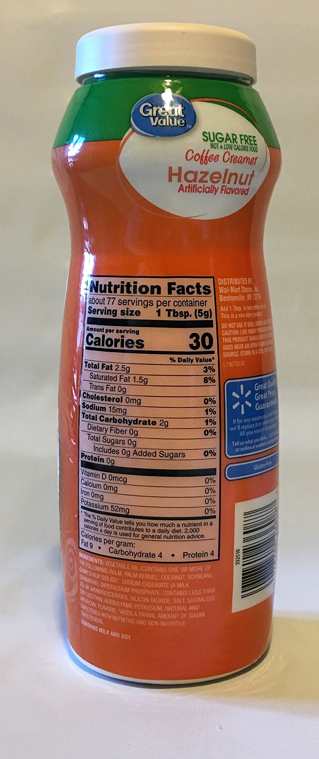 Amazon Com Great Value Sugar Free Hazelnut Powder Coffee Creamer 13 6 Oz Canister Grocery Gourmet Food
